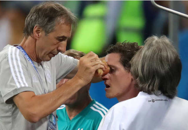 Ngay sau trận đấu, HLV Joachim Low tiết lộ, Rudy có thể bị vỡ mũi.