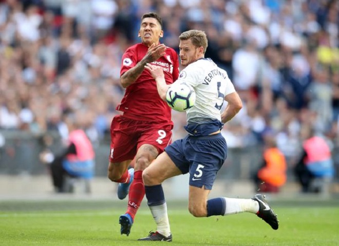 Hậu vệ Vertonghen lấy tay chọc vào mắt Firmino.