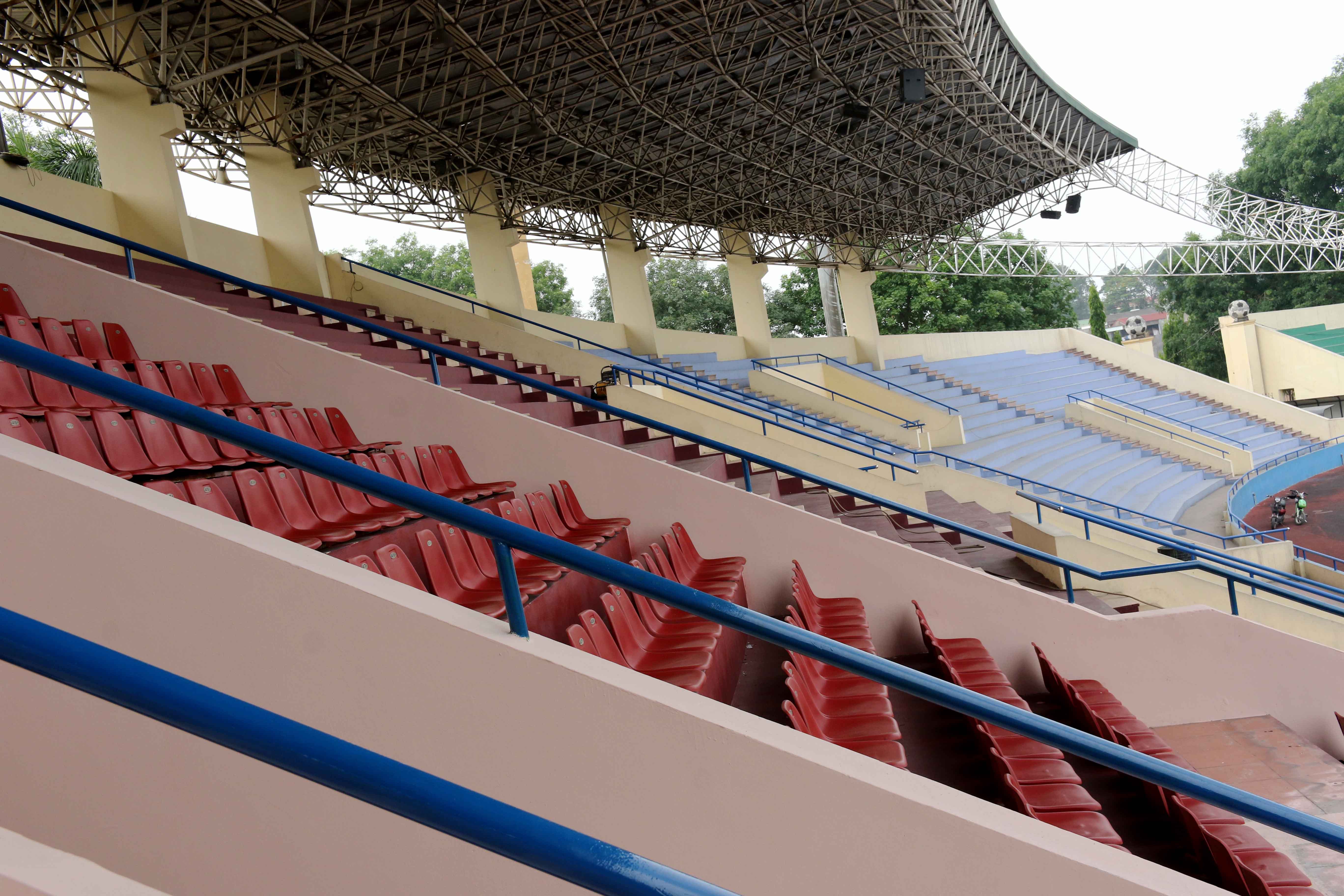 Phần khán đài đang được tân trang và hoàn thiện gấp rút để chuẩn bị cho trận đấu.