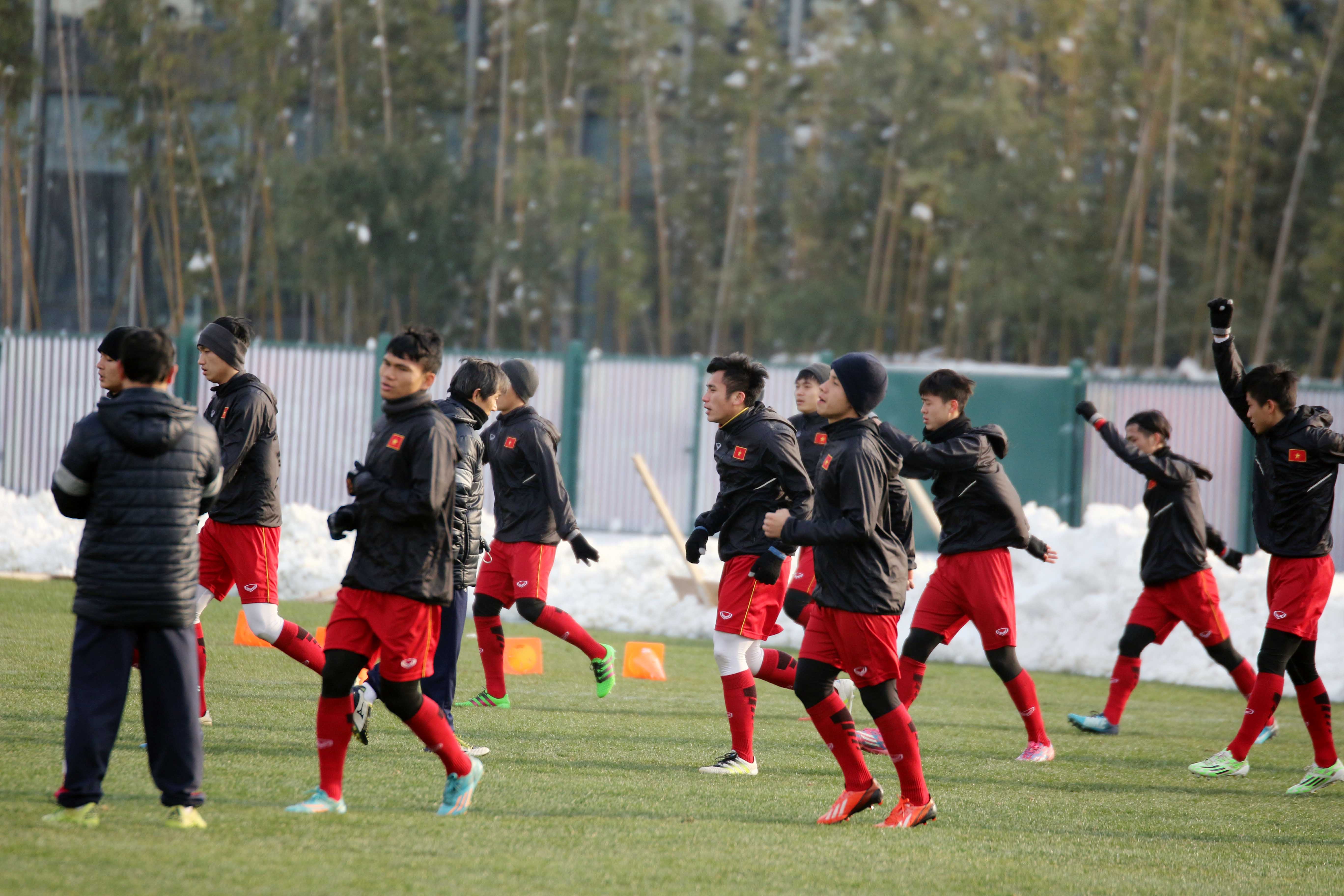 Theo đó, HLV Park Hang Seo chỉ cho báo chí tác nghiệp 15 phút và bắt đầu tập kín. Theo thông tin VFF gửi về, các cầu thủ U23 Việt Nam luyện tập thoải mái, không có dấu hiệu bị sức ép trước trận cầu lịch sử.
