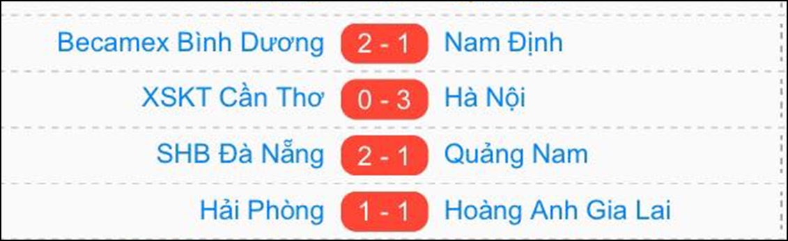 Kết quả các trận đấu ở vòng 2 V.League 2018: