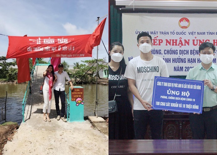 Gần đây nhất, vợ chồng cầu thủ Bùi Tiến Dũng đã ủng hộ 100 chai sát khuẩn và 10 triệu đồng tới quỹ phòng chống dịch tỉnh Bắc Ninh. Đây cũng là một trong những cặp đôi rất siêng năng đóng góp đẩy lùi Covid-19 khiến fans ngưỡng mộ.