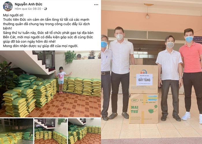 Nguyễn Anh Đức đang là một trong các cầu thủ siêng năng làm từ thiện trong mùa dịch. Mới đây, chàng tiền đạo đã đăng hình ảnh nhà đầy gạo với thông báo sẽ tổ chức phát gạo miễn phí tại địa bàn Bến Cát: “Sáng thứ tư tuần này, Đức sẽ tổ chức phát gạo tại địa bàn Bến Cát, mời mọi người có điều kiện góp sức đi cùng Đức giúp đỡ bà con ngày hôm đó nhé”.