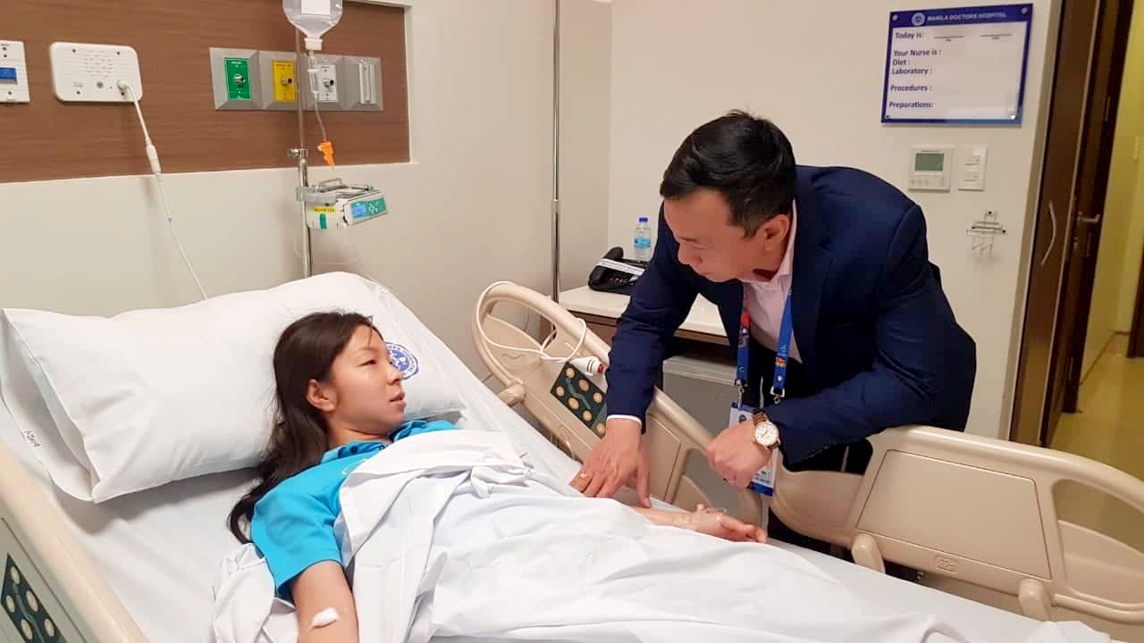 Ông Trần Quốc Tuấn động viên và thăm hỏi tình hình sức khỏe của Hồng Nhung.