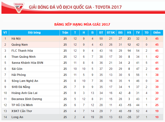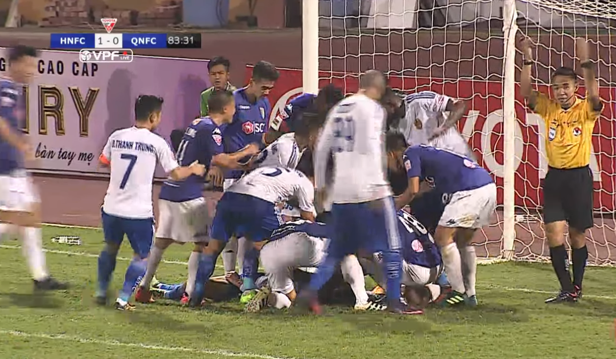 Ở trận đấu trên sân Hàng Đẫy, Quảng Nam đã không thể có điểm khi để thua 0-1 dù đã cầm cự được cho tới gần cuối trận. Với kết quả này, Hà Nội FC đã vươn lên dẫn đầu và chiếm lấy quyền tự quyết trước khi vòng đấu cuối cùng diễn ra.