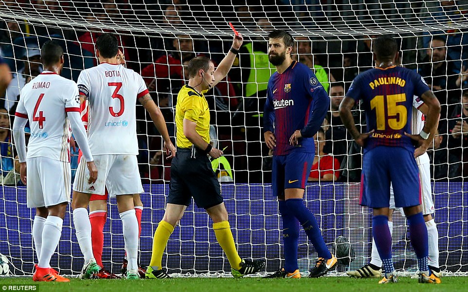 Chiến thắng Olympiacos 3-1 tại Champions League sáng nay của Barcelona bị phủ bóng mờ do trung vệ Gerard Pique bị đuổi sau khi nhận thẻ vàng thứ 2. Đólà tình huống trọng tài cho rằng anh cố tình dùng tay hất bóng vào lưới Olympiacos khi đội bóng Xứ Catalan đang dẫn 1-0.
