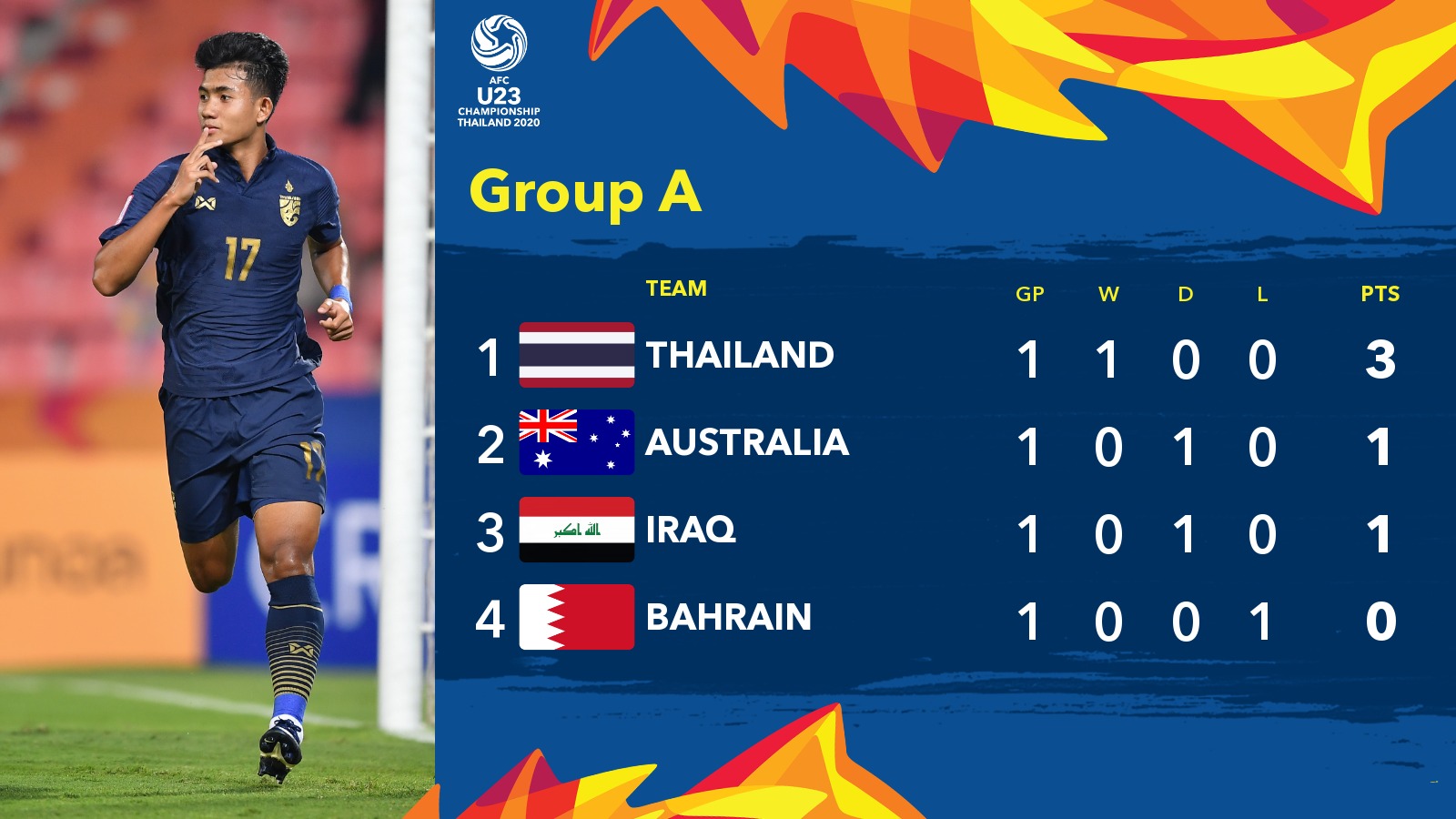 U23 Thái Lan tạm vươn lên dẫn đầu bảng A.