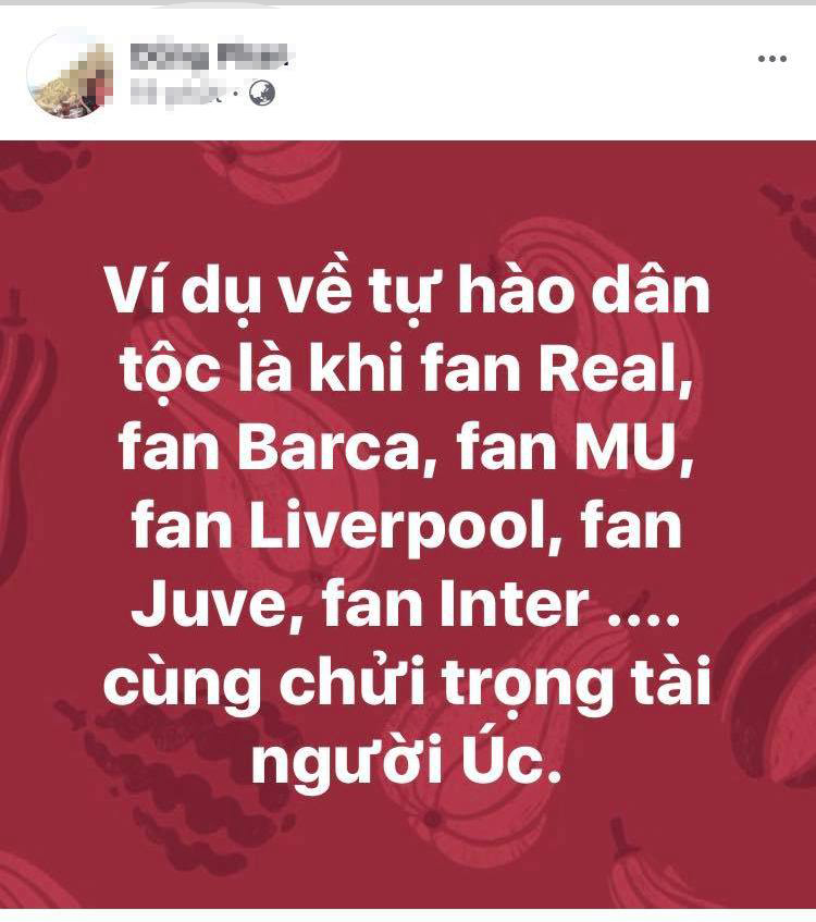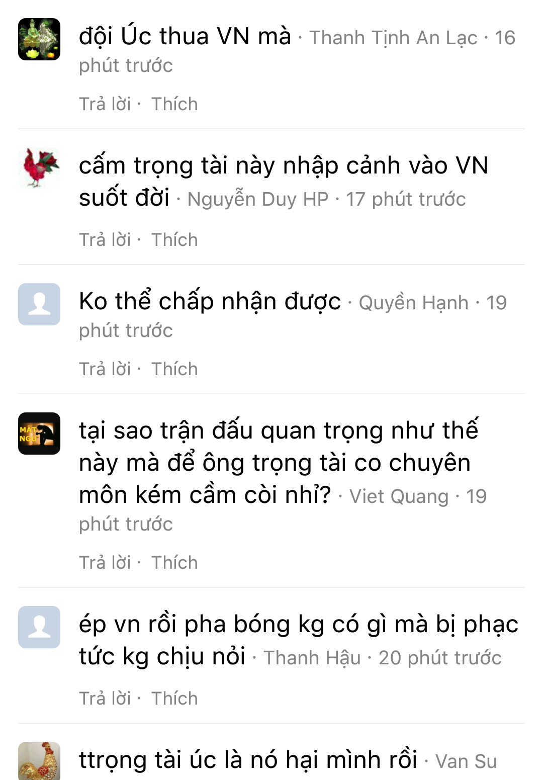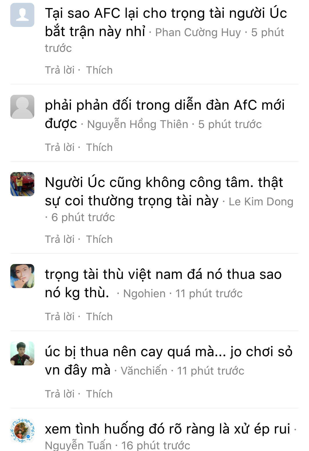 Trong khi đó, nick-name Dũng Phan - một cổ động viên Real tại Việt Nam cho biết các fan bóng đá dù bất cứ CLB nào tại Việt Nam đều đang cùng bức xúc trọng tài người Úc.