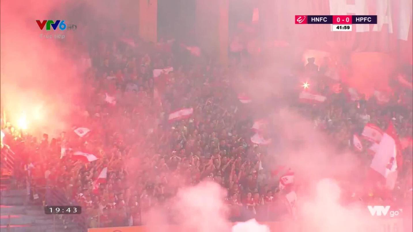 Đây có thể nói là hình ảnh vô cùng xấu xí của CĐV Hải Phòng, còn ban tổ chức sân Hàng Đẫy bất lực với việc CĐV đốt pháo sáng. Năm ngoái, trận mở màn V.League 2018 giữa Hà Nội và Hải Phòng cũng ngập tràn pháo sáng dẫn đến trận đấu bị gián đoạn.