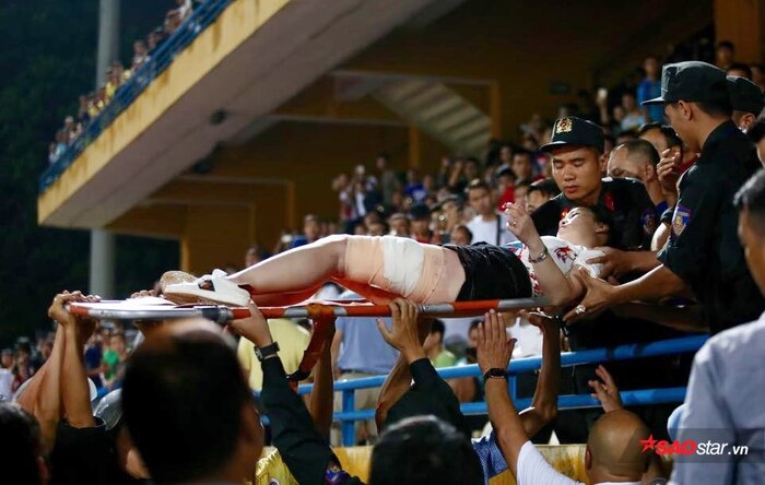 Lúc này pháo rơi trúng đùi trái chị Huyền Anh (công tác tại báo Nhi Đồng) khi chị này đang cùng bạn xem trận đấu, khiến chị bị bỏng nặng. Khi biết pháo bắn trúng người khác, Trực liền lẩn trốn. Chị Huyền Anh được đưa vào Bệnh viện Xanh Pôn cấp cứu và phải phẫu thuật 2 lần để điều trị vết thương, loại bỏ phần da thịt rách nát hở tận xương.