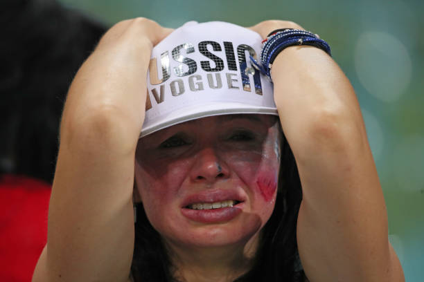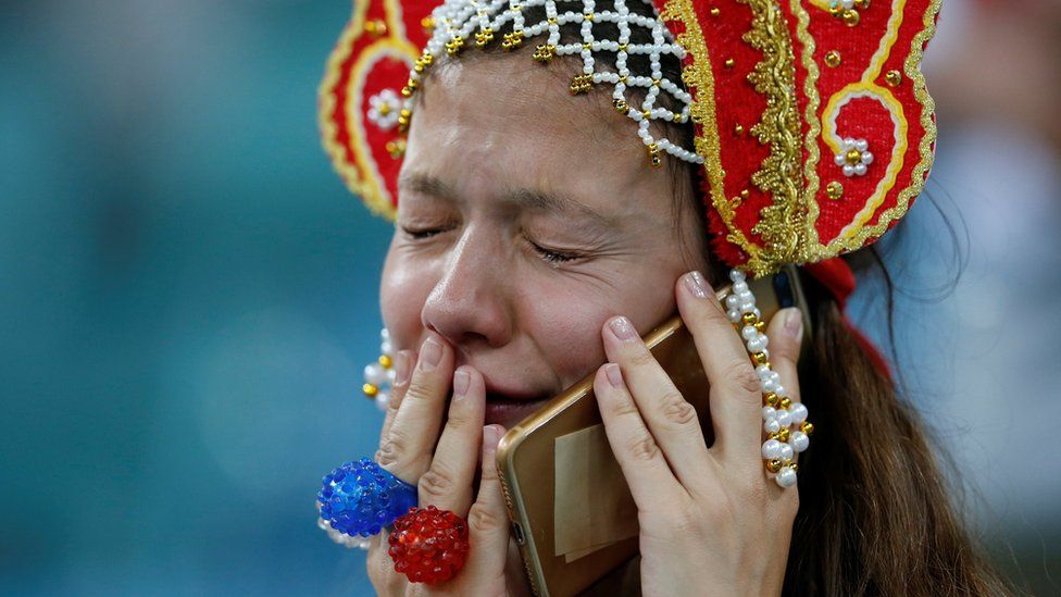 Chứng kiến điều này, rất nhiều CĐV của Nga đã bật khóc. Ngay trên khán đài, một nữ CĐV xinh đẹp vừa gọi điện báo cho người thân vừa rơi lệ.