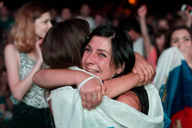 Trong khi đó, bên ngoài khán đài của SVĐ ở Sochi, nhiều CĐV cũng bật khóc nức nở.