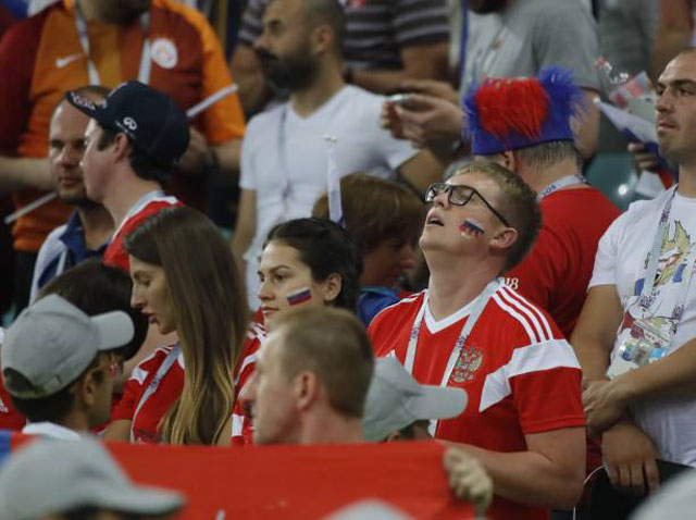 Sự buồn bã thể hiện trên gương mặt của các CĐV Nga.