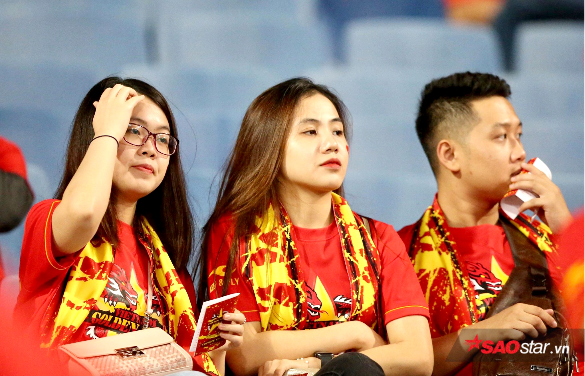 Nhiều nữ CĐV xinh đẹp có mặt từ sớm để chuẩn bị vào sân “tiếp lửa” cho các cầu thủ và BHL của ĐT Việt Nam trong trận đấu quan trọng trước UAE.