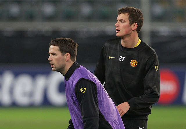 Owen cùng Gill trong buổi tập của Man United.