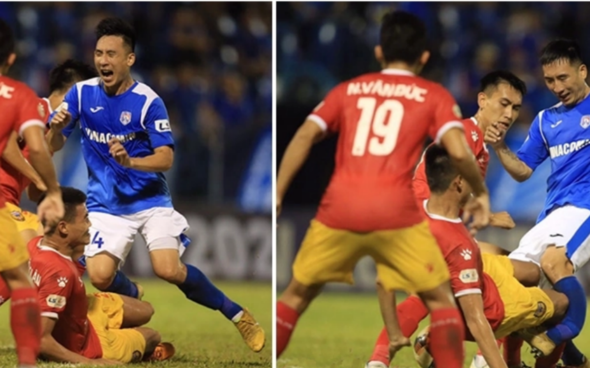 Nhìn lại băng quay chậm, với lực va chạm cực mạnh thì chân của Hải Huy gần như đã biến dạng trong pha va chạm này. Sau tình huống trên, tiền vệ đội chủ nhà được đưa đi cấp cứu ngay lập tức và xác định là bị gãy cả hai cẳng chân.