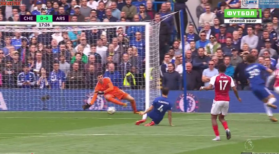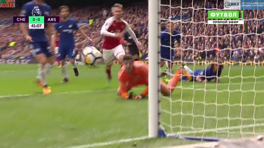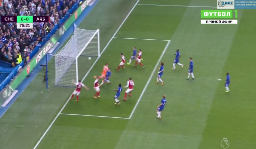Phút 75. VIỆT VỊ!!! Tưởng như các fan Arsenal đã có dịp ăn mừng khi Ramsey đánh đầu tung lưới Courtois nhưng đáng tiếc là tiền vệ này đã rơi vào thế việt vị.