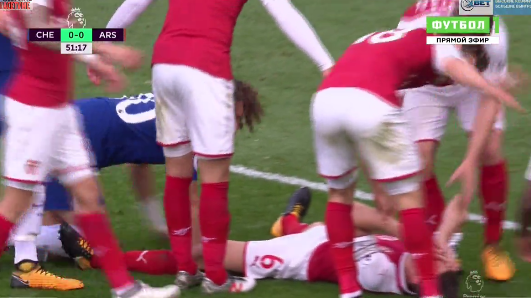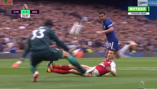 Phút 52: Cú tung người móc bóng của David Luiz khiến Koscielny bất tỉnh. Hậu vệ người Brazil lập tức phải lĩnh thẻ vàng vì lỗi cao chân.
