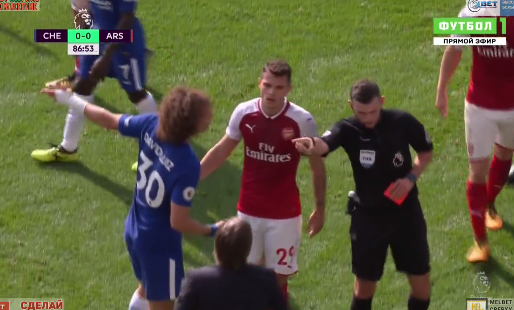 Phút 87: David Luiz bị truất quyền thi đấu sau pha vào bóng nguy hiểm đối với Kolasinac.