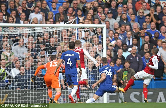 Phút 16: KHÔNG VÀO!!! Welbeck đón đường tạt bóng của Bellerin rồi tung cú đánh đầu nhằm vào góc xa nhưng bóng lại đi chệch cột trong gang tấc.