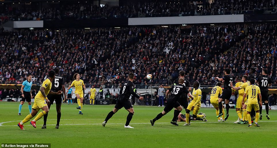 Bất ngờ xảy ra khi vào phút 22, Kostic có quả tạt từ cánh trái để Luka Jovic lắc đầu đập đất đưa bóng về góc xa làm bó tay thủ thành Kepa. Tỉ số được mở cho Frankfurt.