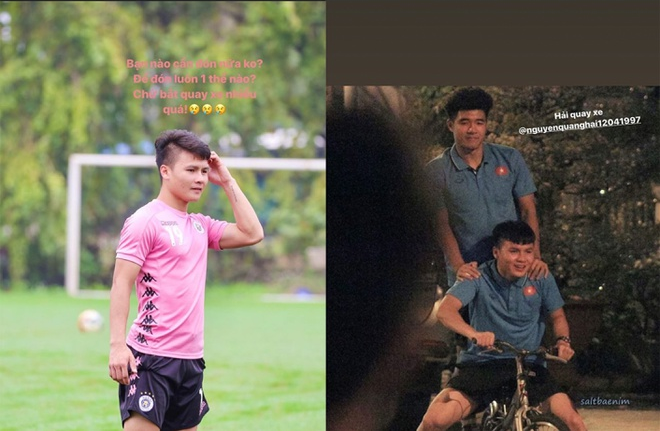 Trong khi đó, bạn thân của Quang Hải là Đức Chinh cũng tranh thủ trêu chọc, dí dỏm chia sẻ hình ảnh Quang Hải đang chở anh trên một chiếc xe đạp kèm dòng chữ: “Hải quay xe”.
