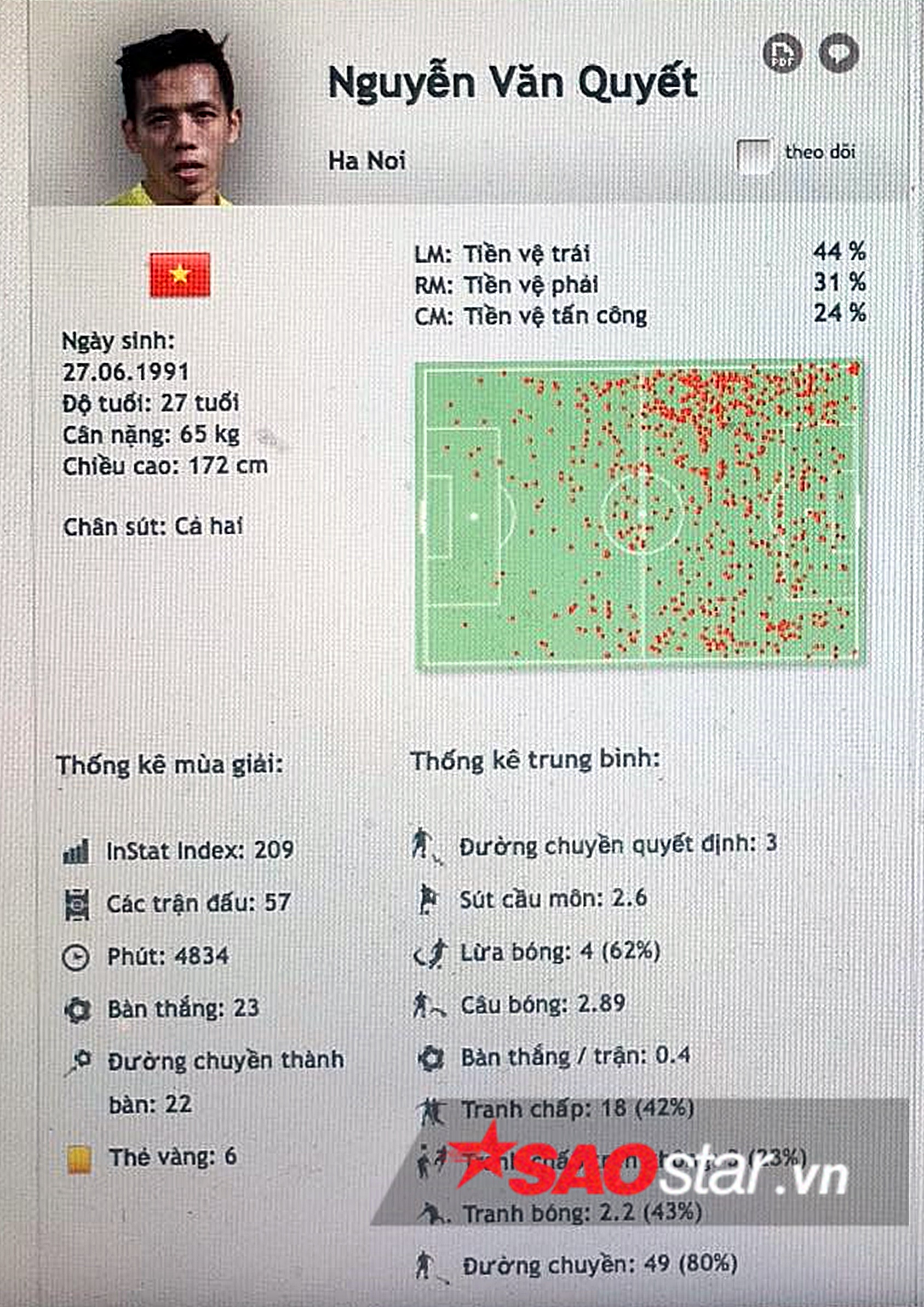 Qua những con số được phần mềm InStat thống kê có thể thấy rằng, Văn Quyết là cầu thủ đang chơi ấn tượng nhất trên hàng công của U23 Việt Nam. Điều này là hoàn toàn trái ngược với một số nhận xét thái quá của người hâm mộ khi nhận định rất cảm tính về Văn Quyết.