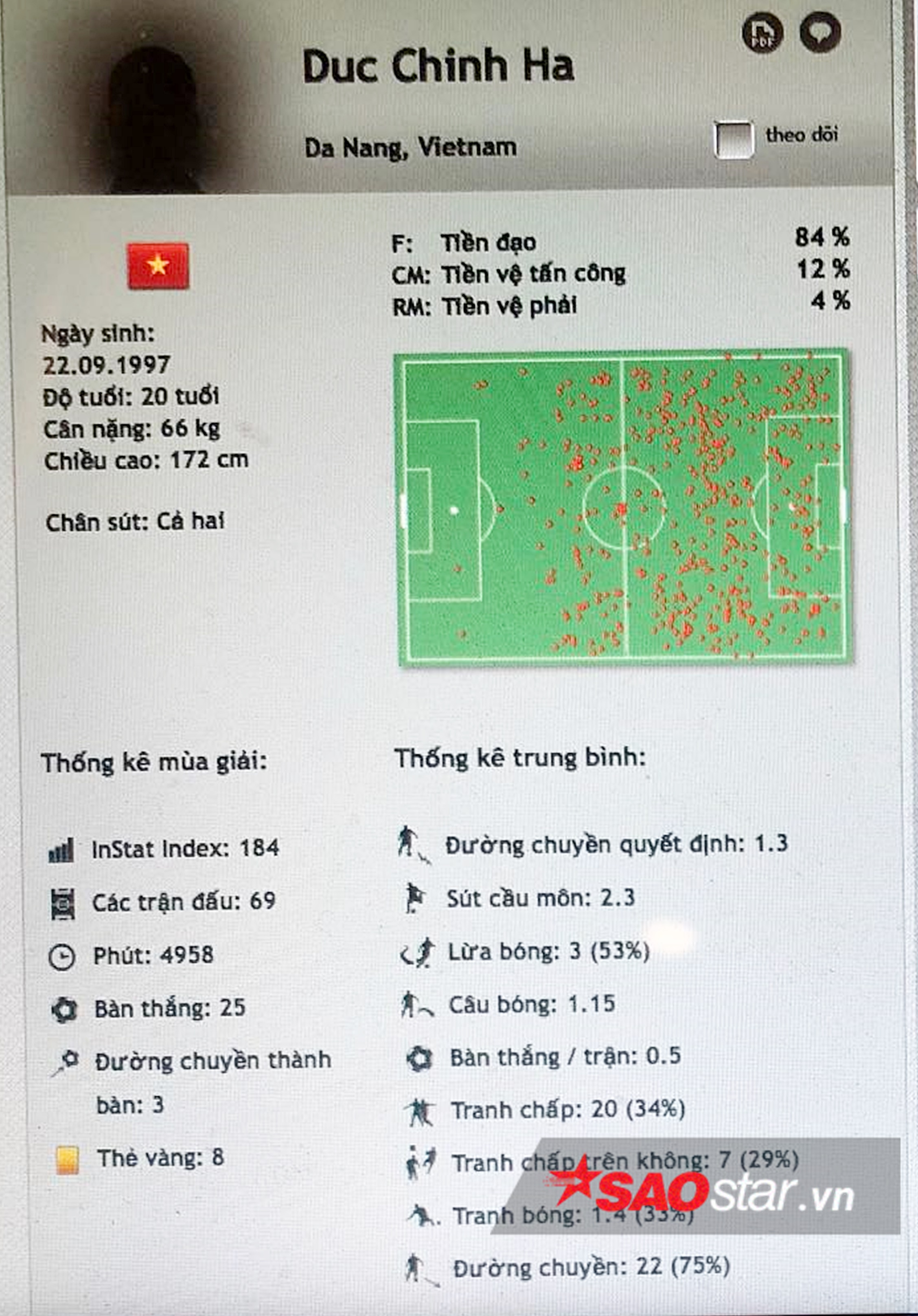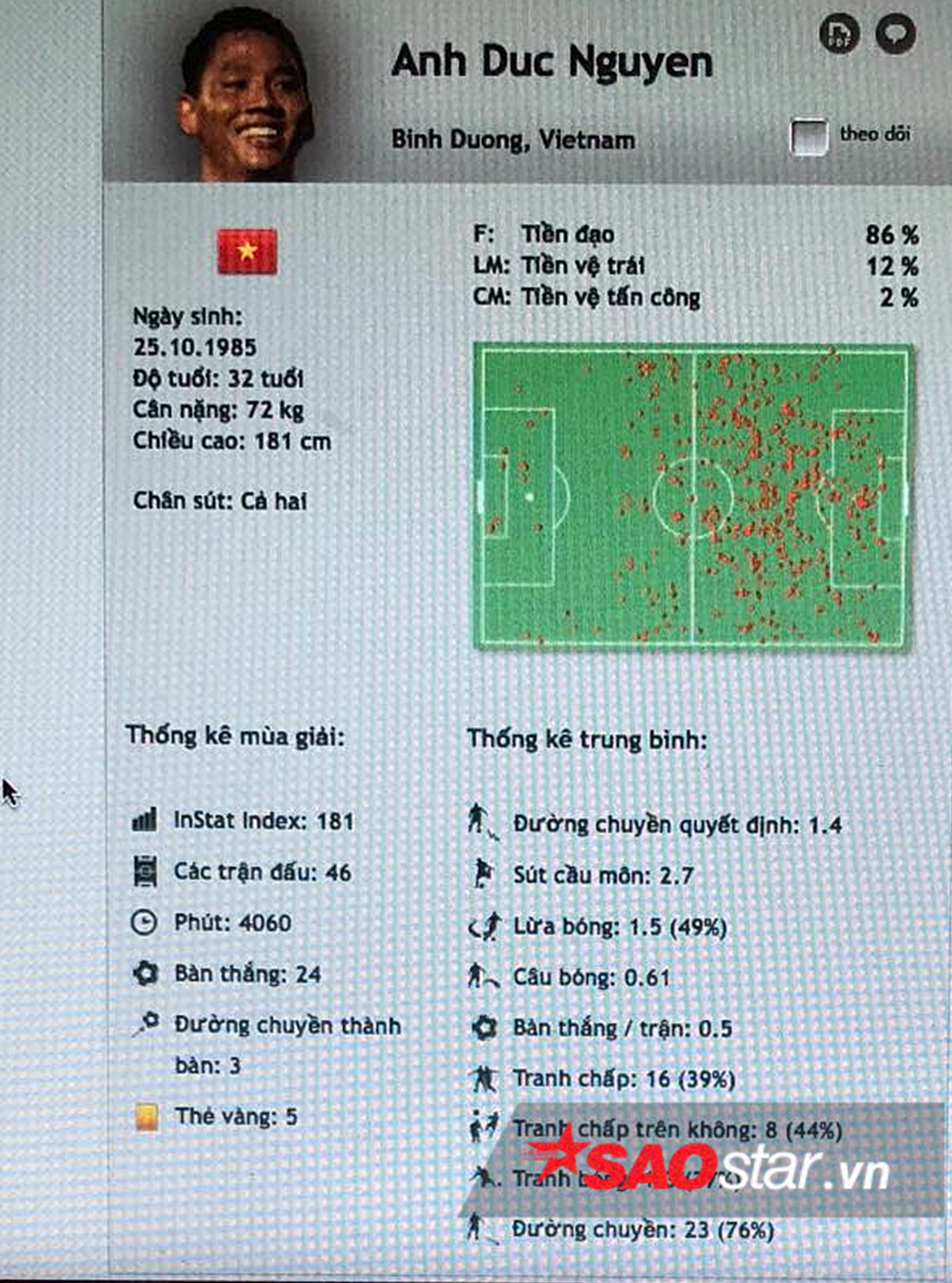 Phần mềm InStat (phần mềm chuyên cung cấp thông tin, số liệu về cầu thủ) cập nhập chỉ số trung bình dành cho hàng công của U23 Việt Nam mang đến những điều rất thú vị.
