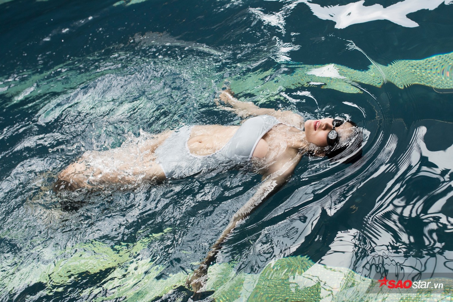 Saostar đã có màn “đột nhập” bất ngờ vào một buổi đi bơi của cô nàng người mẫu xinh đẹp này để tim hiểu về sở thích bơi lội của cô. Trong ảnh, Châu đang vui vẻ khởi động trước khi bơi.