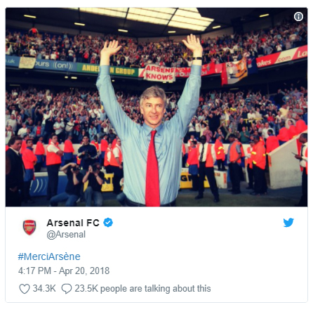 Trong một tuyên bố được đăng trên trang web của CLB, HLV Wenger cho biết: “Sau khi xem xét cẩn thận và có những cuộc nói chuyện với ban lãnh đạo CLB, tôi cảm thấy đây là thời điểm thích hợp để nói lời tạm biệt vào cuối mùa giải này.