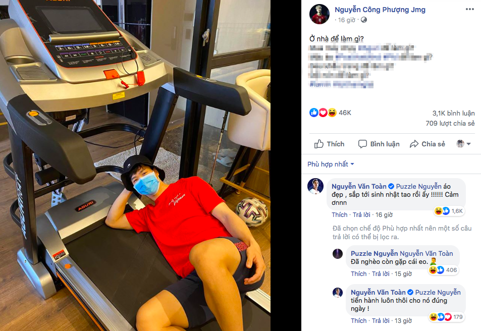 Mới đây, trên trang cá nhân, Công Phượng đăng tải bức ảnh tạo dáng lầy lội bên chiếc máy tập chạy. Thời điểm này, Công Phượng dù đang trong kì nghỉ vì dịch Covid-19 nhưng vẫn ý thức được việc tự tập luyện trong phòng gym để duy trì thể lực.