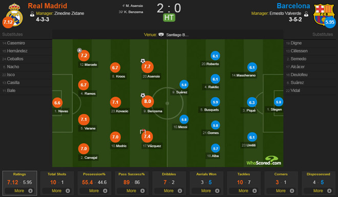 Asensio nhanh chóng cho thấy ông thầy người Pháp là một chiến lược gia thiên tài. Cầu thủ 21 tuổi có cú đặt lòng mãn nhãn từ khoảng cách 30 mét vẽ một đường cong tuyệt đẹp vào lưới Barca mở tỉ số 1-0 cho Real ở phút thứ 4