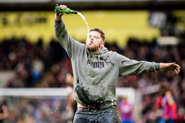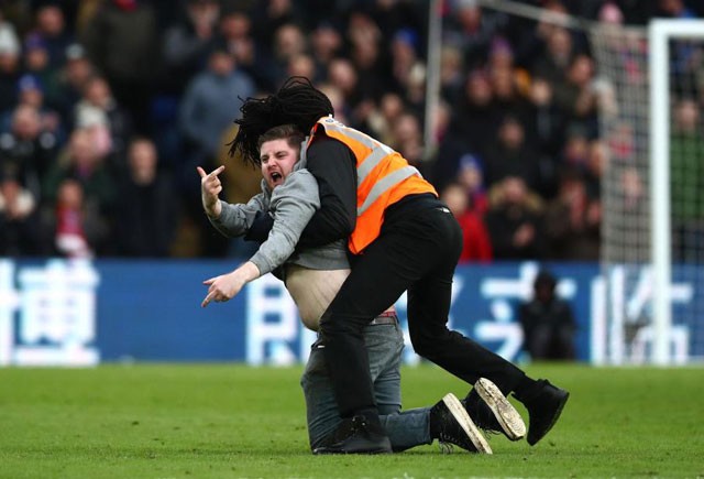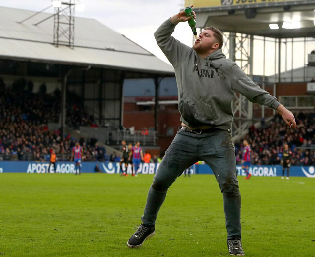Trong lúc cuộc đọ sức giữa Crystal Palace với Newcastle tại vòng 26 Premier League đang diễn ra, một nam CĐV quá khích đã mang chai bia chạy vào sân Selhurst Park. Sau đó, thanh niên này đã ngửa cổ để uống ngay trên sân.