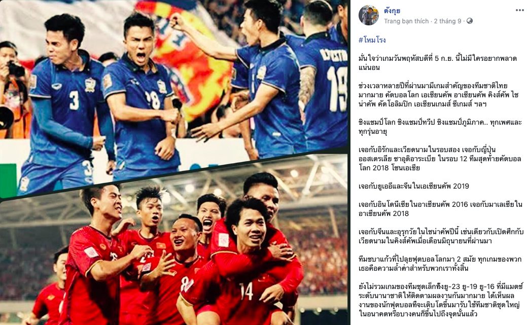 “Đó là một trận đấu được cả Đông Nam Á chờ đợi. Không chỉ những vấn đề liên quan đến chuyên môn, NHM 2 nước chờ đợi trận đấu này là bởi những duyên nợ trong quá khứ“, Tangkui - một chuyên gia bóng đá nổi tiếng Thái Lan mở đầu bài viết.