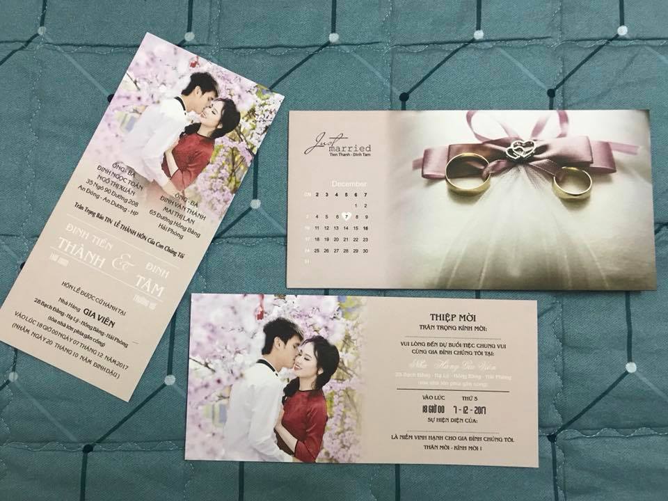 Thiệp hồng của Tiến Thành và Đinh Tâm.