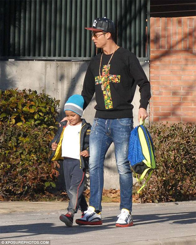 Ronaldo thường đưa con trai đi học.