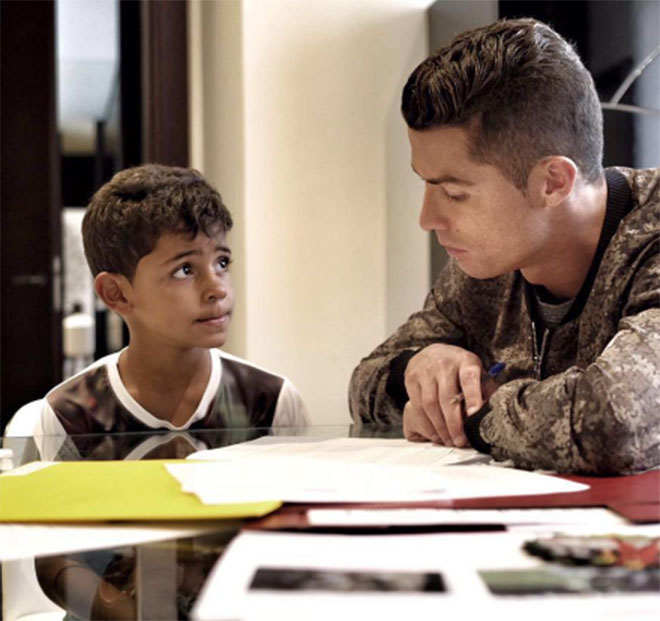Nhưng mỗi thời mỗi khác nên không vì thế mà Ronaldo chẳng quan tâm tới việc học của con trai Cristiano Junior. Thậy vậy, các tay paparazzi vẫn thường xuyên ghi được hình ảnh Ronaldo đưa đón con tới trường. Trên mạng xã hội, Ronaldo đôi khi vẫn đăng tải hình ảnh anh ngồi học cùng cháu Cristiano Junior.