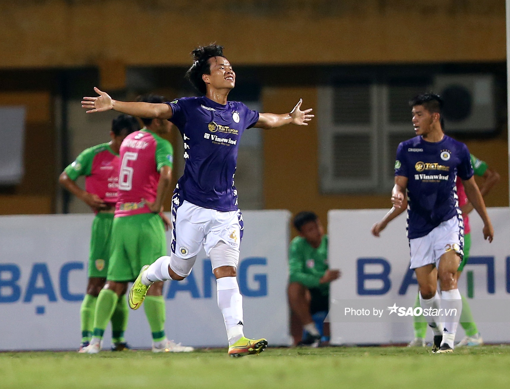 Trước một đội bóng đang thi đấu ở giải hạng Nhất, đoàn quân nhà bầu Hiển đã không gặp khó khăn trong việc kiểm soát thế trận. Họ dễ dàng triển khai lối đá tấn công đậm chất kỹ thuật với những đường bóng phối hợp quen thuộc, nhuần nhuyễn. Kết quả là đã có 3 bàn thắng được đội bóng áo tím ghi vào lưới đối thủ.