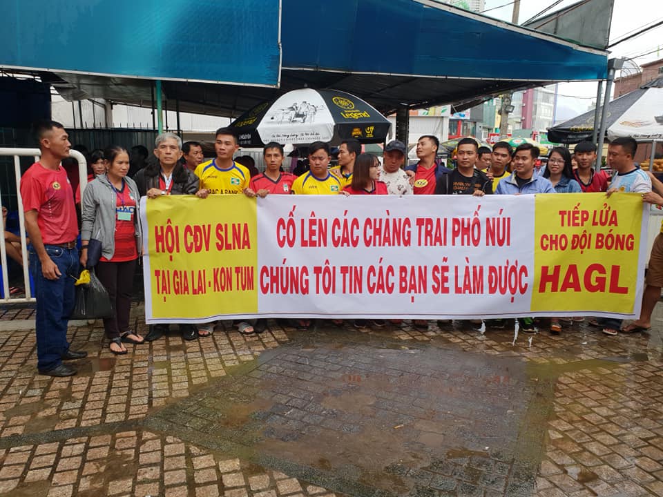 2. Dưới sân, CLB HAGL hạ Đà Nẵng với dàn cầu thủ cầu thủ nội, còn trên khán đài thì họ có những giá trị lớn lao khiến nhiều người làm bóng đá phải suy ngẫm. Đó là hình ảnh CĐV SLNA sinh sống ở Gia Lai đến cổ vũ cho đội bóng phố Núi với tấm băng rôn: “Hội CĐV SLNA tại Gia Lai - Kon Tum tiếp lửa cho đội bóng HAGL. Cố lên các chàng trai phố Núi, chúng tôi tin các bạn sẽ làm được”.