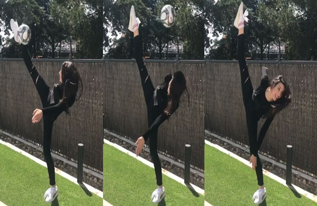 - Clip Almudena Cid tái hiện cú đá của Ronaldo. Nguồn: Instagram nhân vật.