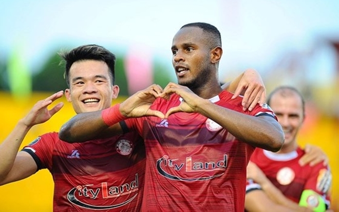 Với lợi thế sân nhà, các cầu thủ TP.HCM nhập cuộc đầy tự tin trong cuộc tiếp đón đối thủ SLNA tại vòng 11 V-League. Hai thắng của ngoại binh Ewonde và Vinicius đã giúp đội chủ sân Thống Nhất vươn lên dẫn trước ngay trong hiệp 1.