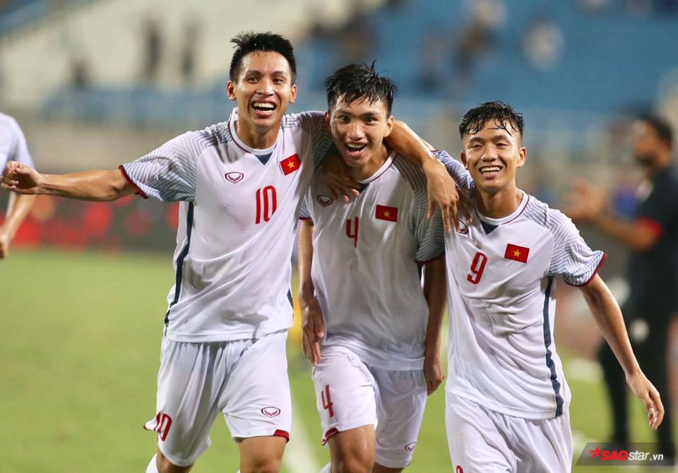 Từ chấm đá phạt bên cánh trái, tiền vệ Hùng Dũng treo bóng và Đoàn Văn Hậu bật cao đánh đầu cận thành, tung lưới U22 Indonesia. Việt Nam vượt lên dẫn trước Indonesia sau 45 phút.