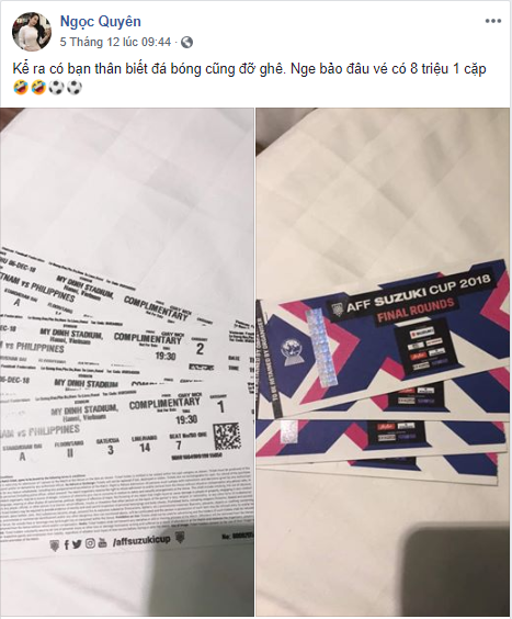 Trước đó, Ngọc Quyên khiến cho NHM ghen tị khi sở hữu tấm vé đắt đỏ tới sân sân xem trận bán kết với giá “free”.