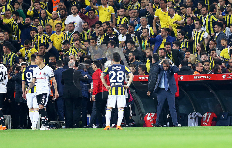Trận đấu bán kết lượt về Cúp quốc gia Thổ Nhĩ Kỳ đã bị hoãn ở phút 57 do các cổ động viên gây bạo loạn trên khán đài. Một hình ảnh cho thấy HLV Senol Gunes của CLB Besiktas đã ôm đầu và rời sân trong đau đớn sau khi bị hứng một vật cứng vào đầu đến từ các cổ động viên.