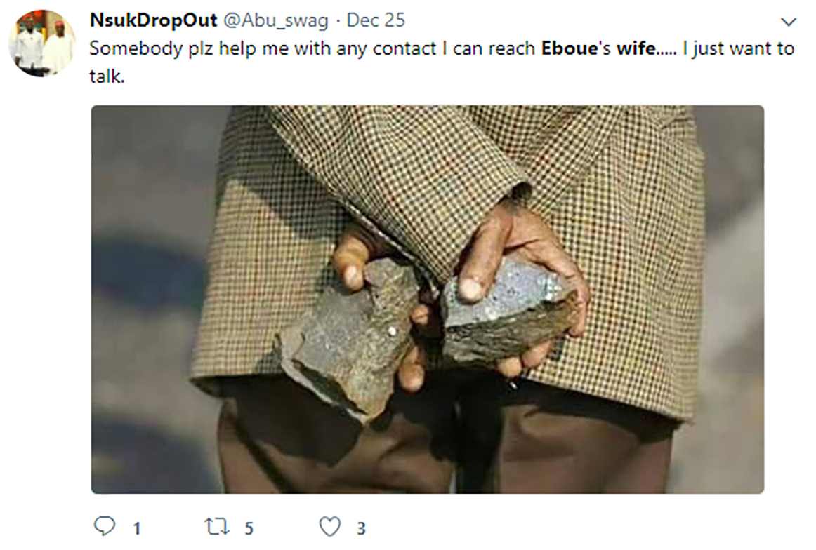 “Ai đó hãy làm ơn giúp tôi liên lạc với vợ của Eboue. Tôi chỉ có vài điều cần trao đổi thôi”.
