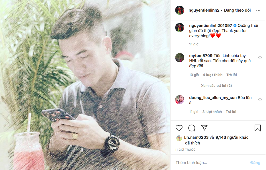 Tối 17/4, tiền đạo Nguyễn Tiến Linh đăng dòng status khá u buồn trên trang cá nhân. Nội dung bài viết đề cập đến chuyện cảm ơn một người đặc biệt sau khi cả hai đã cùng nhau trải qua một khoảng thời gian tuyệt vời.