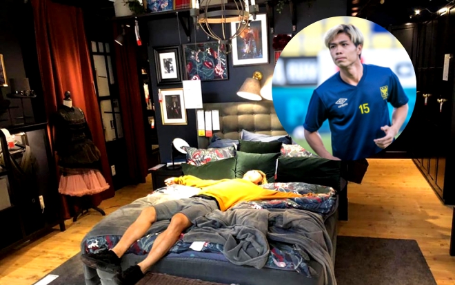 Trong ảnh, tiền đạo xứ Nghệ nằm trên một chiếc giường trong một căn phòng ấm cúng. Tuy nhiên, nhiều fan lại soi chi tiết khá thú vị trong căn phòng, đó là sự xuất hiện của chiếc váy… màu hồng.
