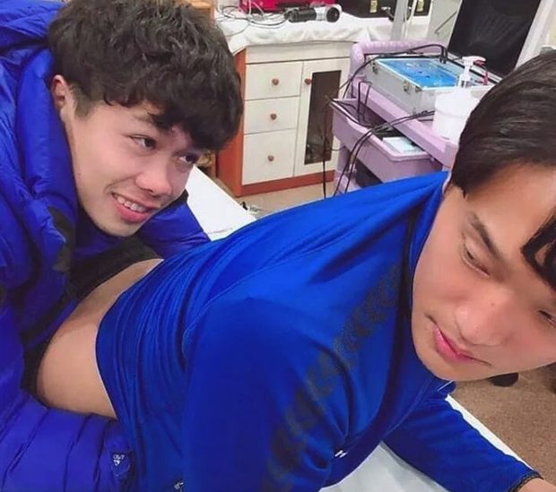 Chanathip 'nũng nịu' đòi thủ thành Kawin cõng trên tập. Những hình ảnh trên khiến không ít người phải đặt dấu hỏi về giới tính thực của cầu thủ được mệnh danh là 'Messi của Thái Lan'.