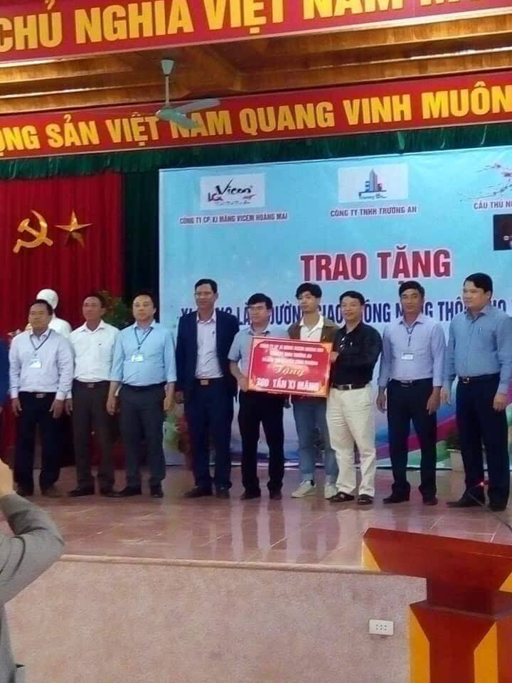 Theo đó, tiền đạo Nguyễn Công Phượng đã tặng 300 tấn xi măng (trị giá gần 500 triệu đồng) để hỗ trợ chính quyền và nhân dân xã Mỹ Sơn xây dựng con đường nông thôn mới ở địa phương.