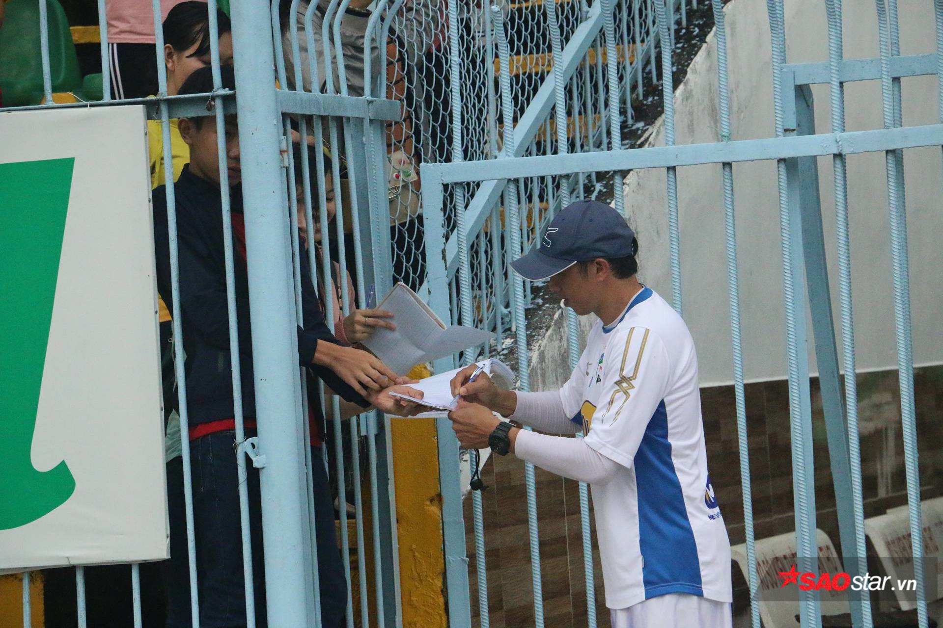 Vì vậy, sau buổi tập thì các cầu thủ HAGL và HLV Dương Minh phải mỏi tay ký tặng cho các fan hâm mộ đến từ sớm để theo dõi họ tập.